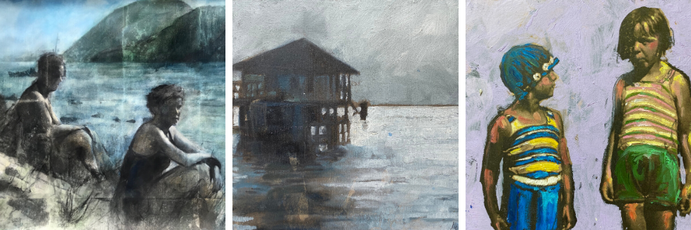 Krista Machovina is a painter and mixed media artist, with training as an art therapist and art educator. As an artist, Krista draws inspiration from the natural world, in particular the sea and sky, vintage ephemera and found objects. These elements create a narrative of every changing boundaries; those that merge, some diffuse and others starkly clear. A majority of her work is absent of the human form, creating a meditative, immersive environment for the viewer. Recent mixed media work incorporates images from her family history, reflecting their shared love of the water. Her paintings are evocative of and influenced by the Tonalist and Color Field movement, with an element of American Gothic Romanticism.